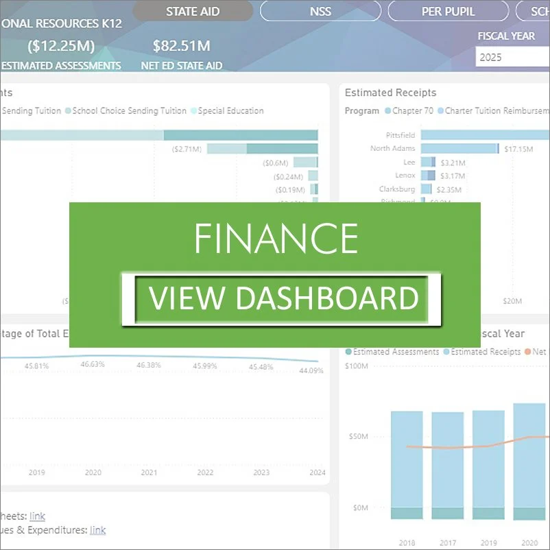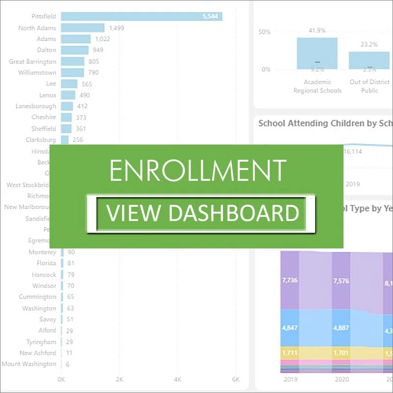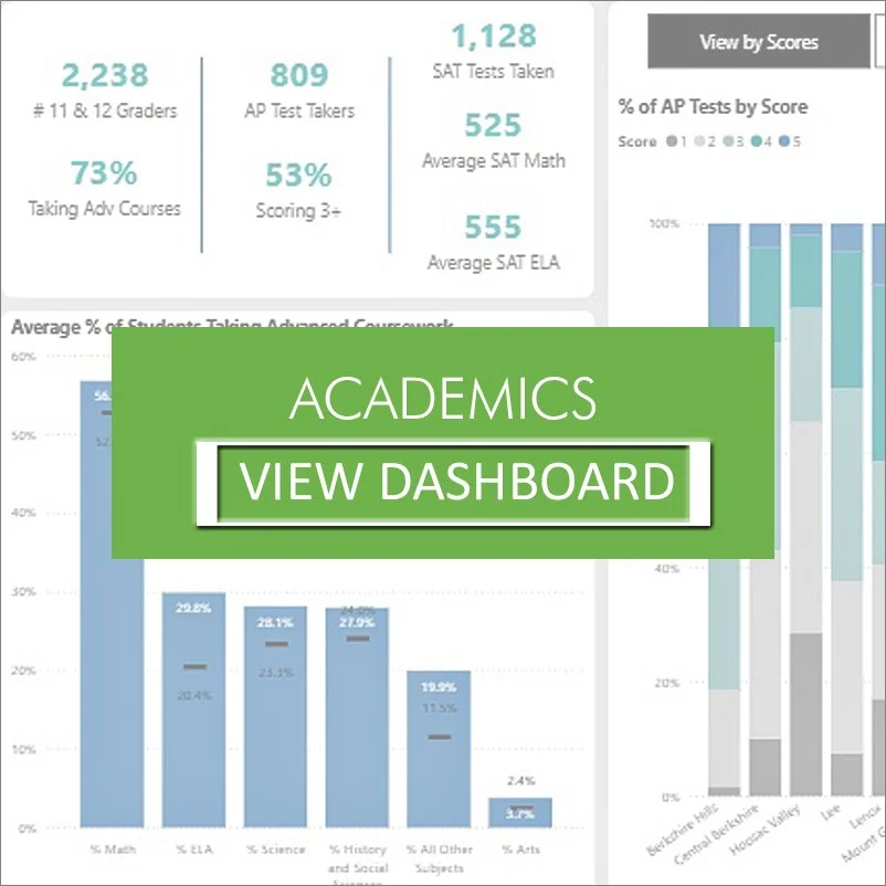 Below are four interactive dashboards, designed in partnership with Open Architects. The dashboards provide accurate, timely data about educational trends and outcomes in Berkshire County in the areas of academics, enrollment, finance, and MCAS.
